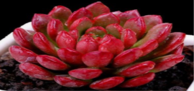 宝石花叶片像玉石,集聚枝顶,排成莲座状。是美丽的观叶植物。它的叶子厚实有棱,有光泽,形状像宝石,多枝叶子重叠成莲花座,所以也成为宝石花和石莲花。宝石花比花好,它的植物小,形状像莲花,玲珑翠艳,不是花,观赏价值很高。