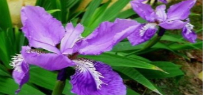 香根鸢尾,多年生草本。是法国的国花。但实际上,鸢尾与百合分属两个截然不同的科类,虽然一眼看去,似乎两者都有六枚"花瓣",殊不知鸢尾花只有三枚花瓣,其余外围的那三瓣乃是保护花蕾的萼片,只是由于这三枚瓣状萼片长得酷似花瓣,以致常常以假乱真,令人难于辨认。此外,鸢尾的花瓣一半向上翘起,一半向下翻卷,而百合花的花瓣却一律向上。另有一些鸢尾的花心深处还长有三枚由雌芯变成的长舌形瓣儿。