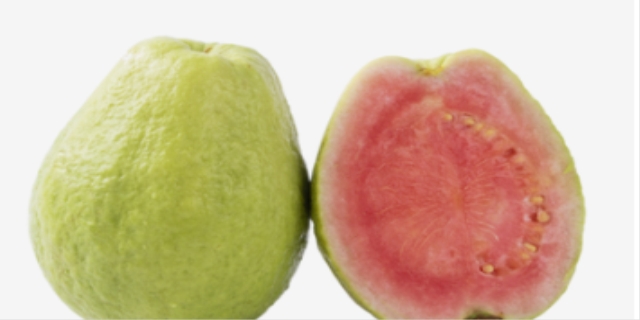 芭乐是番石榴在我国台湾的一个别名,两者是同一种水果。番石榴是桃金娘科番石榴属植物,是一种适应性很强的热带果树,原产于南美洲,也是我国福建的主栽品种。番石榴外面是淡绿色的表皮,里面的果肉是红色的,口感细嫩爽滑、清甜爽脆,味道甘甜多汁,中间很少有籽。