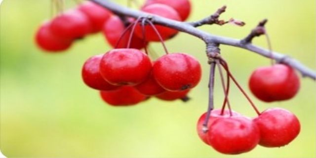 海棠果的选择为圆形或者卵形,外形像一颗小型的苹果,果面比较光滑,果皮颜色为鲜红色,厘米的果肉为黄白色,并且海棠果成熟后香味浓郁,口感酸甜可口。