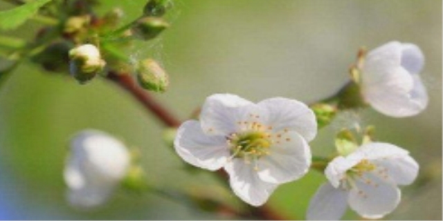车厘子在山东地区3~4月份开花,5月份结果到6月份成熟,不同地区开花结果的时间会有差异性。车厘子外表颜色鲜颜红如玛瑙,晶莹剔透,吃起来酸酸甜甜的还有维生素和多种微量元素比较丰富。车厘子的花朵先于叶片开放,花朵为伞房花序或近伞形花序,花瓣以白色或粉白色为主。