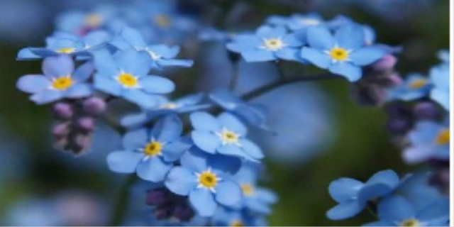 勿忘我的花朵颜色大多呈蓝色,开放之时无数朵淡蓝色的小花一簇簇的开满花茎,花朵中心有一圈淡黄色的花蕾,大多作为园林绿化植株,栽种在花坛或路边,也可作为盆栽养殖,摆放到室内起到美化环境的作用。