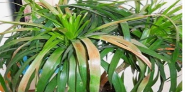 龙血树虽然耐阴,但是也是需要阳光来进行光合作用的。如果长期将它养护在荫蔽的环境中,它的叶子就会发黄、干枯。在这样的情况下,我们最好把花盆放在东南方向的窗台上接受阳光,过一段时间就会有所改善。温度过低:龙血树耐寒性较差,冬季若保养温度过低,则进入休眠期,叶尖或叶缘会变黄干枯。解决这一问题的办法是,冬天要做好它的保温工作,最好把它放在室内进行保养。