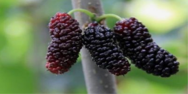 桑葚具有补肝益肾、生津润肠、乌发明目、止渴解毒、养颜等功效,适用于阴血不足、肝肾阴亏、腰膝酸软、目暗耳鸣、头晕目眩、盗汗及津伤口渴、消渴、肠燥便秘等症。桑葚有黑白两种,鲜食以紫黑色为补益上品。果汁有较强的粘着力,果甜味一致。成熟的桑葚质油润,酸甜可口,以大、肉厚、色紫红、糖分足为佳。